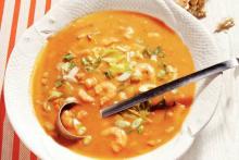 Het is een vullende soep die je naar smaak en wens kunt variëren. Doe de kip in een grote soeppan met 4 liter water. Na 10 minuten het vlees omscheppen.